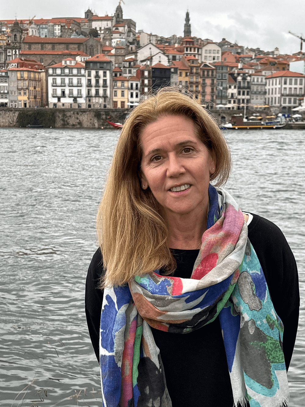 Our Big Flower scarf gets around on beautiful women—Lisa in Porto Portugal looks spectacular in it!